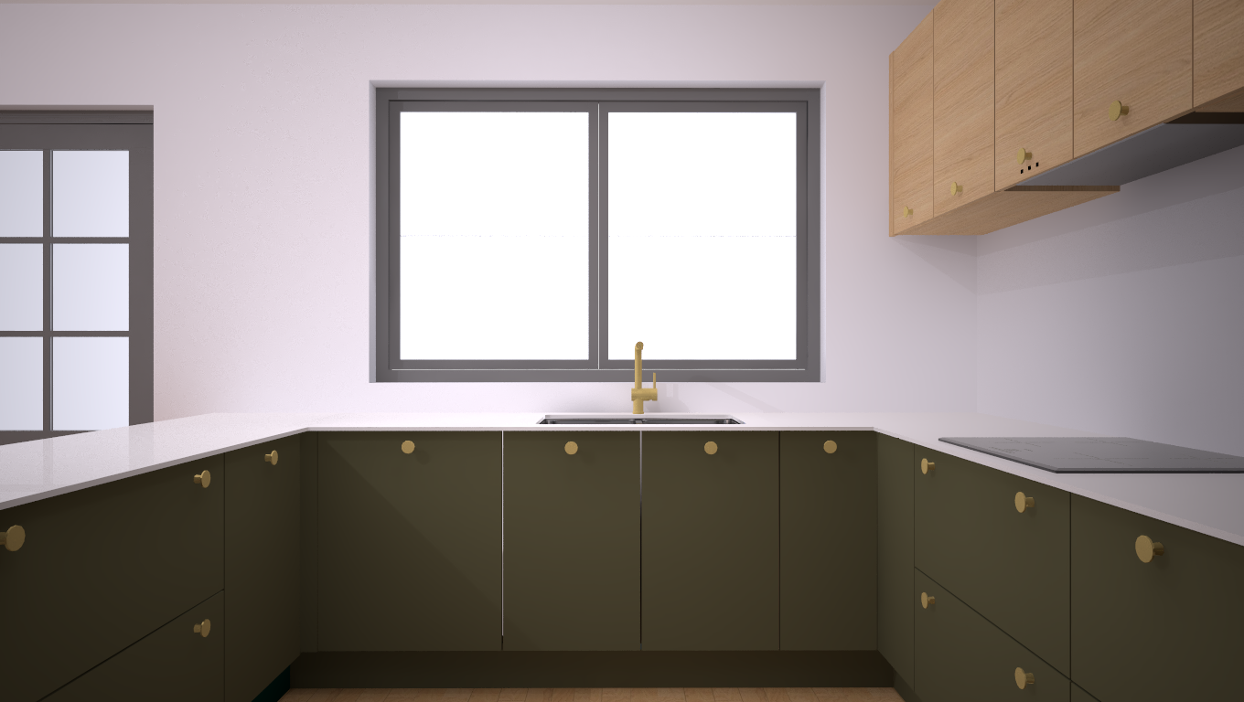Compact laminate is included in this design as a considered compromise—balancing functionality and style within the constraints of the project budget. Should the budget allow in future, this can be revisited and upgraded to a longer-life surface.